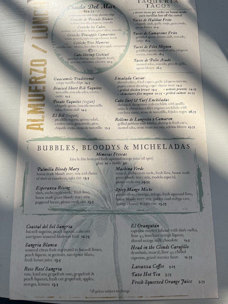 The dining experience is further enhanced by complimentary fresh tortillas and honey butter, setting the tone for a memorable meal. Guests can indulge in artisanal margaritas, perfectly crafted for both taste and aesthetics. With a welcoming atmosphere, attentive service, and a robust outdoor seating area, Palmilla Cocina y Tequila promises an unforgettable culinary journey that enchants both the eyes and palate.